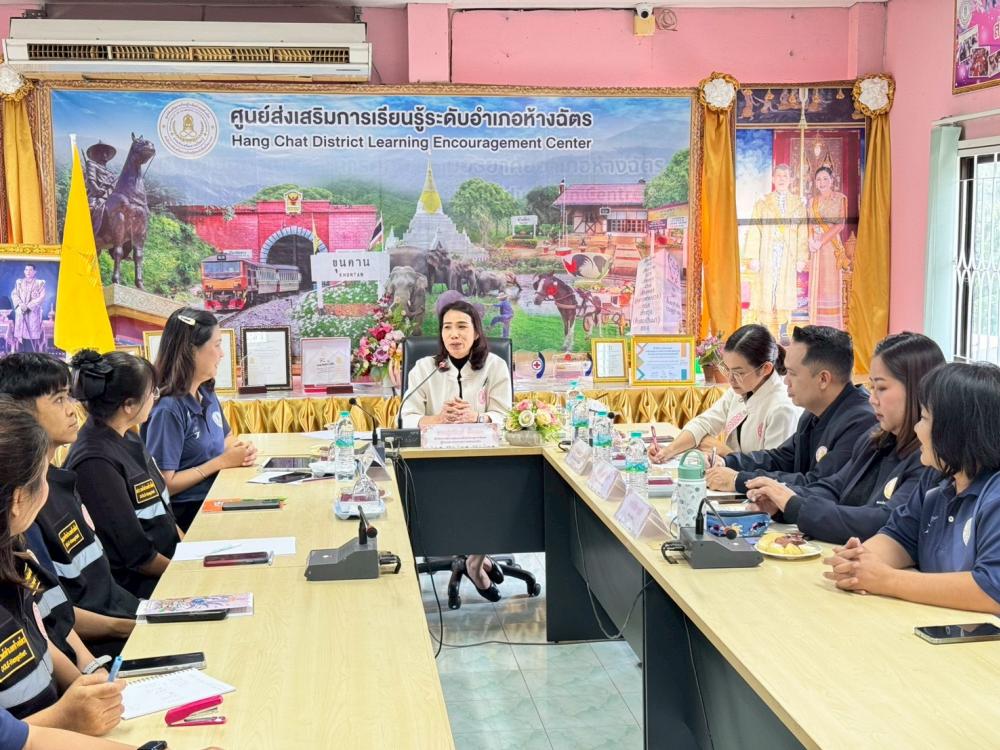วันที่ 6 มีนาคม 2569 ศูนย์ส่งเสริมการเรียนรู้ระดับอำเภอห้างฉัตร นำโดย นายรักษก อภิวงค์คำ ผู้อำนวยการศูนย์ส่งเสริมการเรียนรู้ระดับอำเภอห้างฉัตร มอบหมายให้คณะครู และบุคลากร สกร.ระดับอำเภอห้างฉัตร ต้อนรับคณะตรวจสอบภายในการดำเนินงานโครงการศูนย์ฝึกอาชีพชุมชน ประจำปีงบประมาณ พ.ศ. 2568 นำโดยนางรุ่งทิพย์ ถ้ำทอง ผู้อำนวยการหน่วยตรวจสอบภายใน และนางสาวเนตรภิรมย์ ทรัพย์กฤดิ์ นักตรวจสอบภายในปฏิบัติการ จากสำนักงานศึกษาธิการจังหวัดลำปาง พร้อมคณะตรวจสอบภายในของ สกร.ประจำจังหวัดลำปาง มาตรวจติดตามและประเมินผลการดำเนินงานของโครงการศูนย์ฝึกอาชีพชุมชน โดยมีการนำเสนอผลการดำเนินงานของโครงการศูนย์ฝึกอาชีพชุมชนในปีงบประมาณ 2568 การตรวจเอกสาร หลักฐานการดำเนินการตามแนวทางการจัดกิจกรรม และได้ลงพื้นที่ตำบลเวียงตาล เพื่อติดตามผลการดำเนินงานเชิงประจักษ์ โดยการสัมภาษณ์ สอบถามวิทยากร และสมาชิกกลุ่มของกลุ่มวิสาหกิจชุมชนการแปรรูปผลผลิตทางการเกษตร ณ บ้านยางอ้อยใต้ ตำบลเวียงตาล อำเภอห้างฉัตร จังหวัดลำปาง