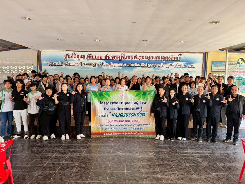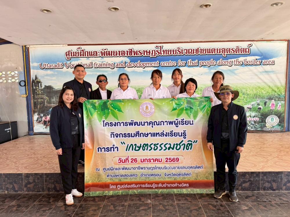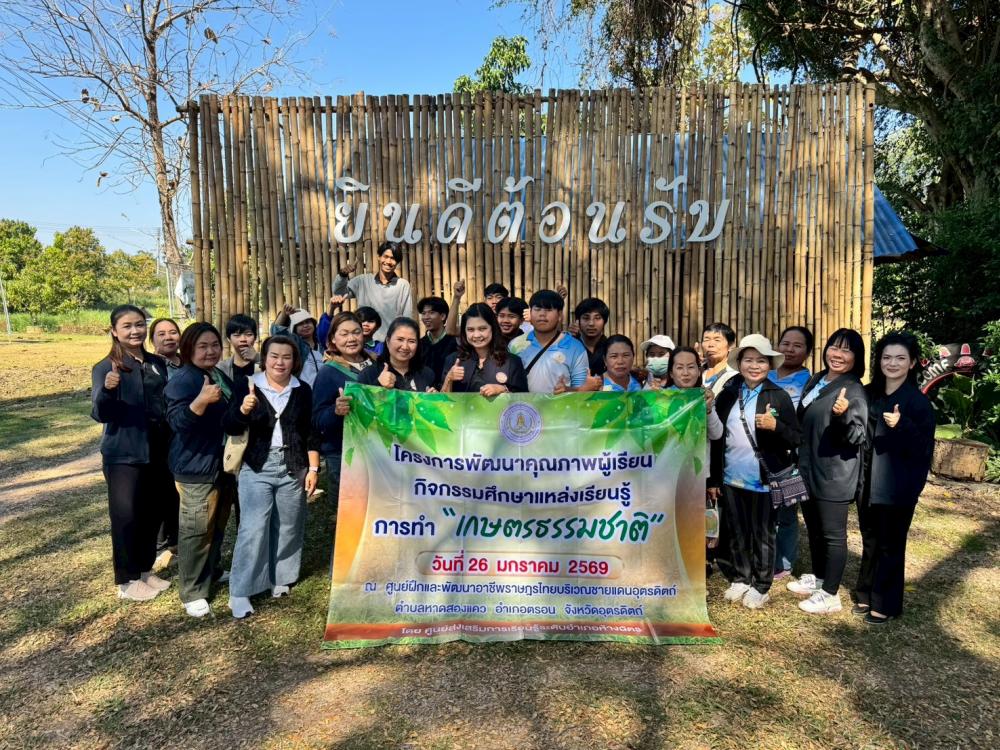 วันที่ 26 มกราคม 2569 นายรักษก อภิวงค์คำ ผู้อำนวยการศูนย์ส่งเสริมการเรียนรู้ระดับอำเภอห้างฉัตร มอบหมายให้คณะครู ดำเนินการจัดโครงการพัฒนาผู้เรียน กิจกรรมศึกษาแหล่งเรียนรู้ การทำ “เกษตรธรรมชาติ” ณ ศูนย์ฝึกและพัฒนาอาชีพราษฎรไทยบริเวณชายแดนอุตรดิตถ์ ตำบลหาดสองแคว อำเภอตรอน จังหวัดอุตรดิตถ์ โดยมีผู้เรียนเข้าร่วมโครงการฯ จำนวน 70 คน จากศูนย์การเรียนรู้ระดับตำบลทั้ง 7 ตำบลของอำเภอห้างฉัตร จังหวัดลำปาง